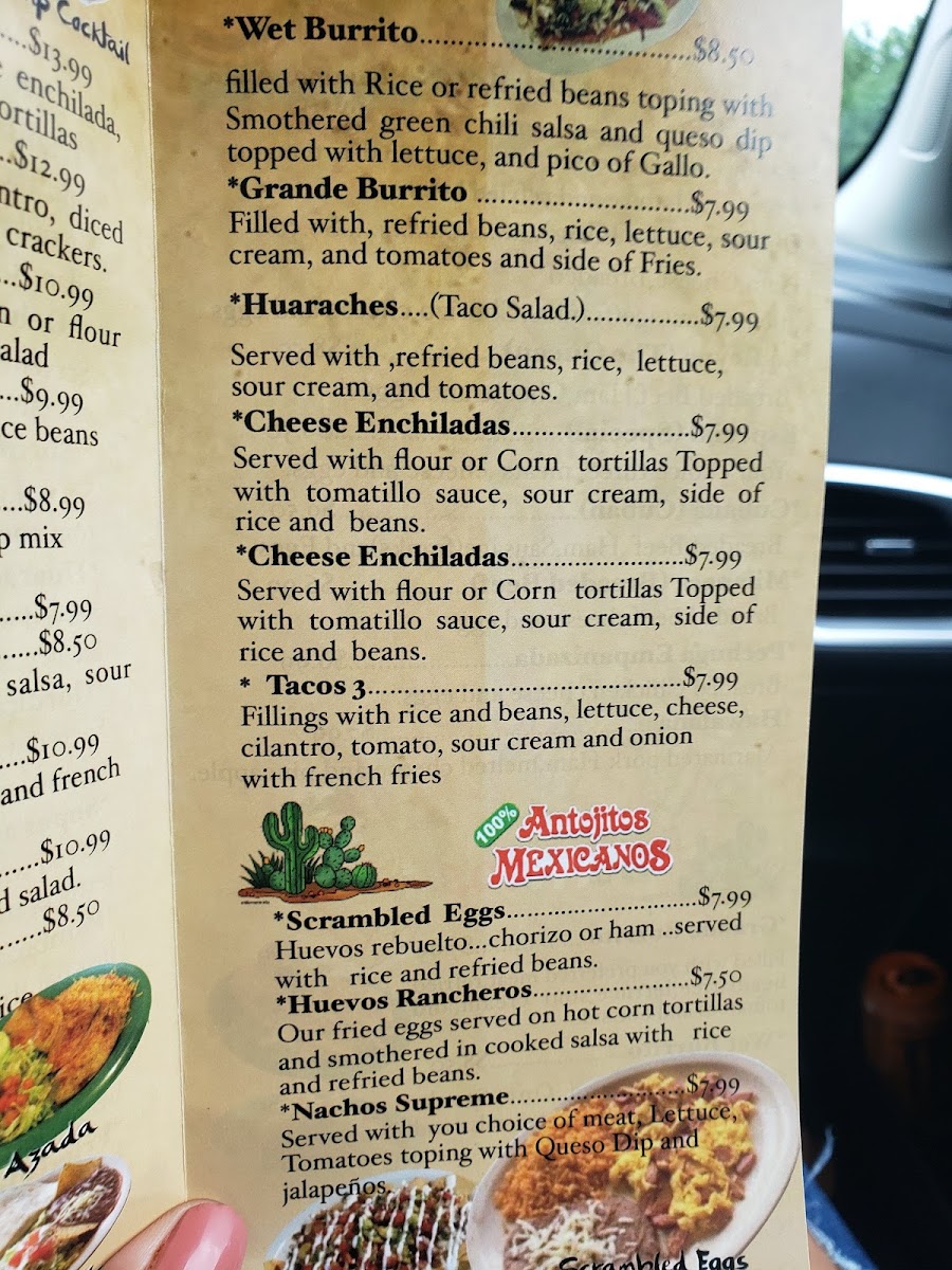 “ Excellent food! They have some tex-mex, but as soon as I saw the traditional section of the menu I didn't look further. Two beef sopes with a side. I chose rice, but the sopes were big enough I barely ate any rice. Everything was fresh & cooked to perfection. Their bakery case was filled with a variety of choices & chocolate flan made its way home with me. Light & not too sweet. I will definitely be going back. ”